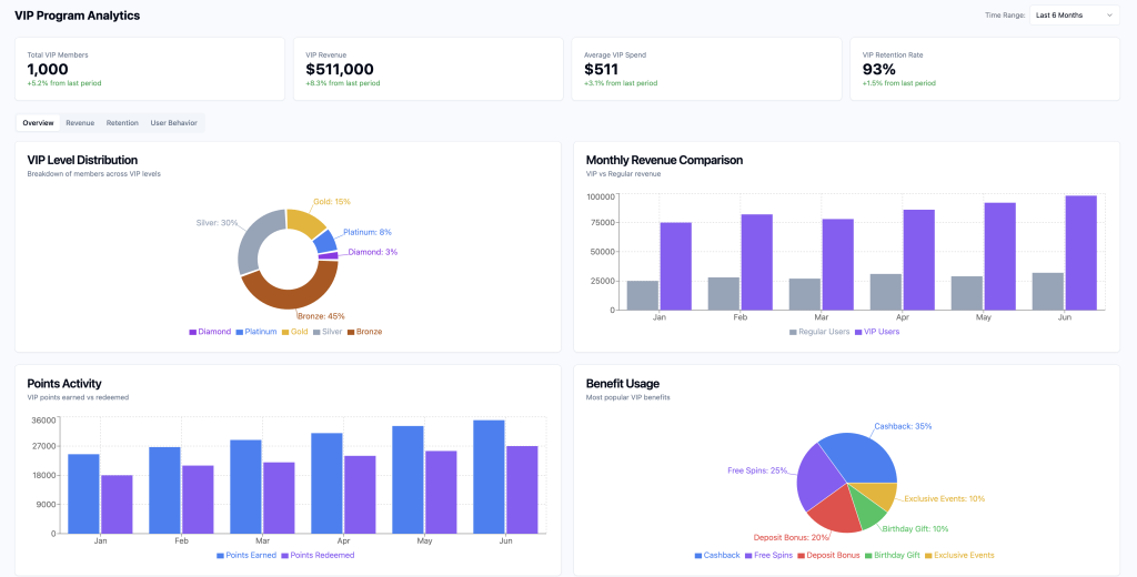 Build a tailored VIP experience with tiered rewards, exclusive benefits, and personalized offers. Strengthen relationships with your top players and increase lifetime value.